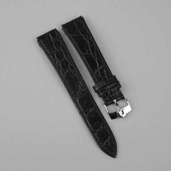 Omega leather strap with original steel buckle. Someone has at some time slightly narrowed the ends of the strap to make it 18 mm wide. |
