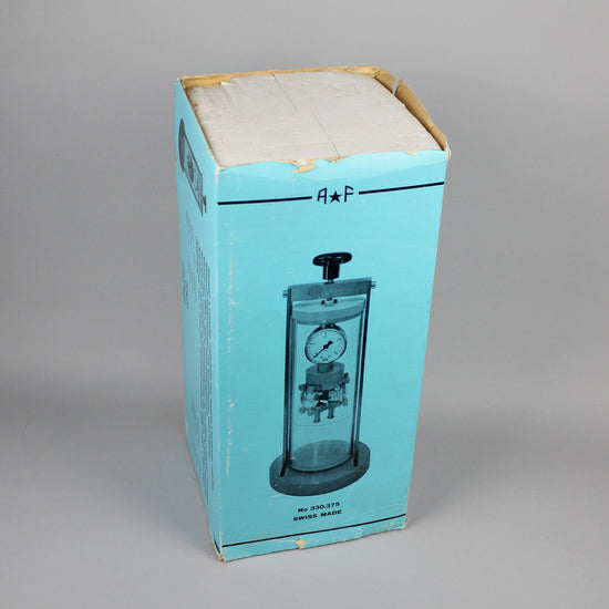 Unworn watch pressure tester in its original box. The condition of the seals or the functionality of the tester itself have not been tested. |