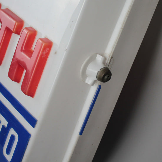 A rare treat. An old advertising sign from outside a Zenith dealer shop. The sign is made of plastic and therefore light compared to its size. Traces of use and age can naturally be found, especially around the edges of the sign. It is possible to tune some lights inside it. |