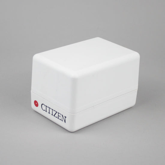 Citizen's small plastic watch box. There are several similar boxes available, and there may be slight differences between them, both in terms of color brightness and tone, as well as condition. |