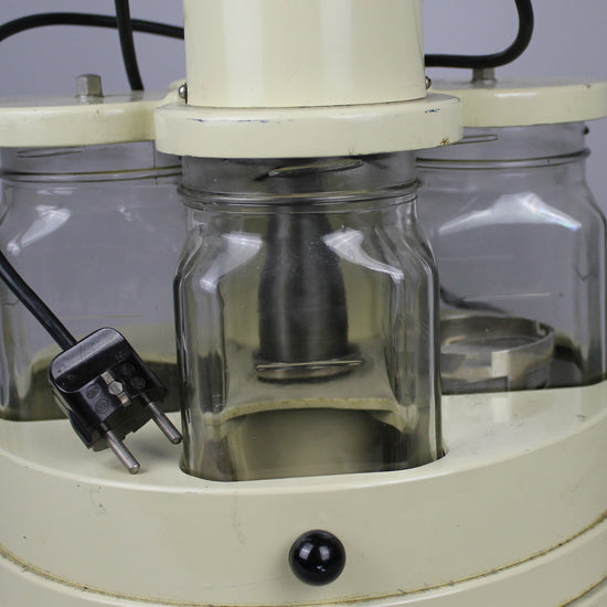 A used and functional watch parts washer, which the previous owner has restored and replaced, among other things, the seals on the lids of the glass jars. |