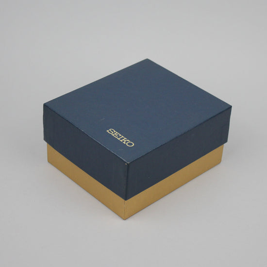 Seiko's stylish watch box, which also comes with an often missing cardboard outer box. There are several similar boxes available, and there may be slight differences between them, both in terms of color brightness and tone, as well as condition. |