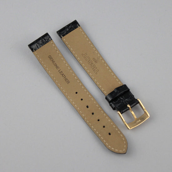 Used Tissot leather strap with original gold plated buckle. There are several similar straps available and there can be slight differences between them in terms of condition. |