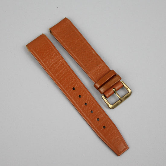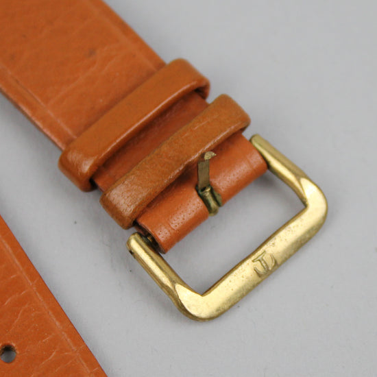 Used and old leather strap and gold-plated Tissot buckle, with an inner width of 17 mm. The leather part is probably also Tissot, although it doesn't say so. |