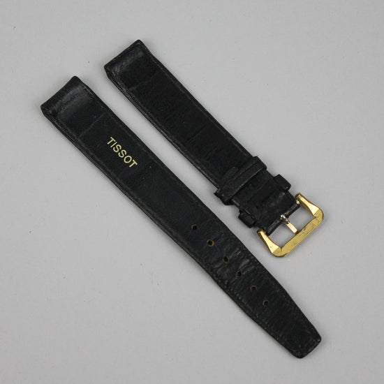 Used and old Tissot leather strap with gold-plated buckle. Leather in slightly poor condition, buckle inner width is 16 mm. |