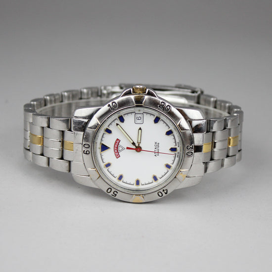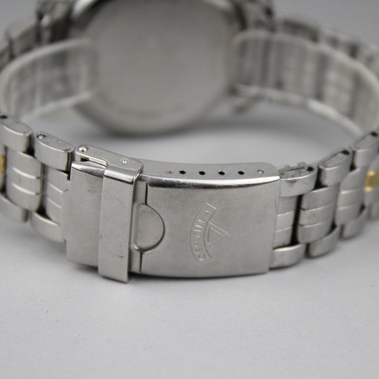 Monikäyttöinen Certinan paristokello. Kuorissa ja alkuperäisessä metallirannekkeessa on iän sekä käytön tuomia jälkiä. Ranneke mahtuu noin 20 cm paksuun ranteeseen. Huoltohistoria ei ole tiedossa, mutta kello ja sen ominaisuudet toimivat hyvin. |