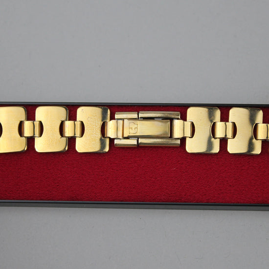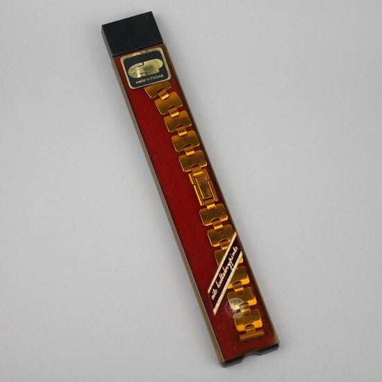 Käyttämätön Emil Penttisen suunnittelema kullattu metalliranneke, joka sopii kokonsa puolesta naisten kelloihin. |