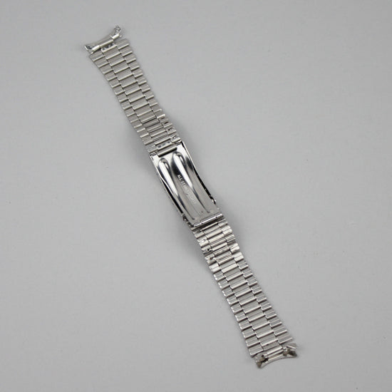 Käytetty, mutta todella siistissä kunnossa oleva Seikon metalliranneke kaarevilla päätypaloilla. |