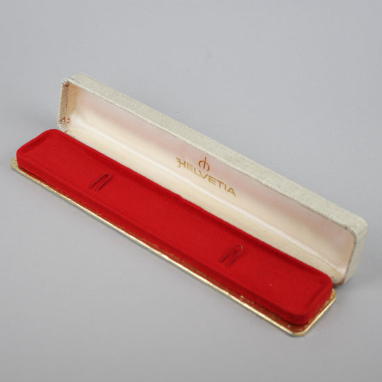 | Hyvässä kunnossa oleva Helvetian kellolaatikko, joka sopii kokonsa puolesta naisten kelloille. |