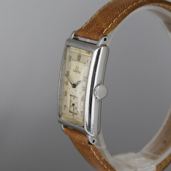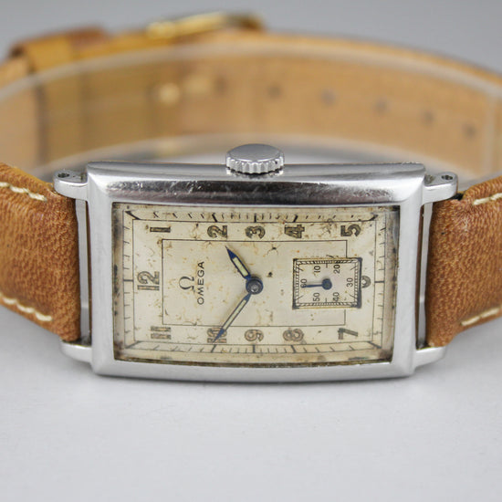 Omegan noin 80-vuotias vetokello ikäisekseen harvinaisilla teräskuorilla. Kellossa on vuosikymmenten tuomia käytön jälkiä. Nahkaranneke on käyttämätön. Huoltohistoria ei ole tiedossa, mutta kello toimii ja heittoa sen käynnissä on alle minuutti vuorokaudessa. |