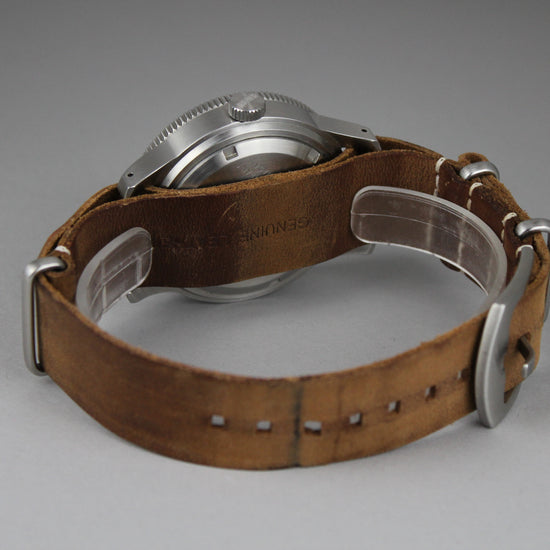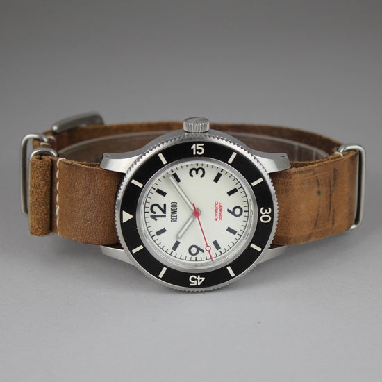 Kanadalaisen mikrobrändin sukelluskello upealla full lume-taululla. Kellossa on vähäisiä käytön jälkiä siellä täällä. Nuppi on ruuvilukittava. Kello ja sen ominaisuudet toimivat moitteettomasti. |