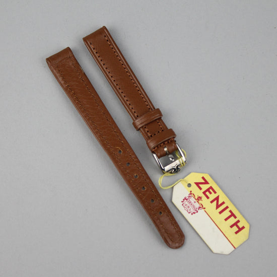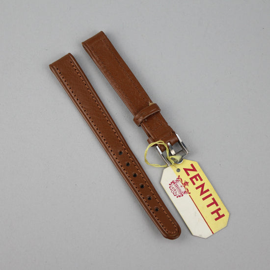 Käyttämätön Zenithin nahkaranneke alkuperäisellä soljella, joka sopii kokonsa puolesta naisten kelloihin. |
