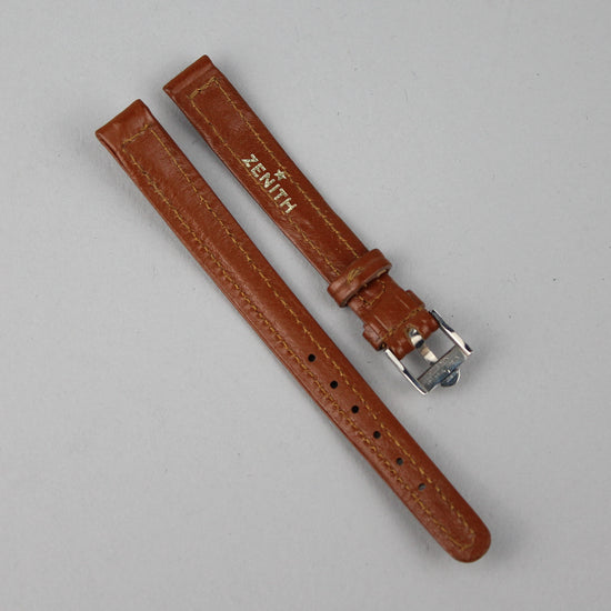 Käyttämätön Zenithin nahkaranneke alkuperäisellä soljella, joka sopii kokonsa puolesta naisten kelloihin. |